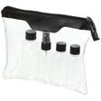 Este neceser apto para el avión permite llevarlo a bordo contigo. Incluye 2 botes de 50 ml, 1 bote de 90 ml, 1 pulverizador y 1 embudo. Los botes, el pulverizador y el embudo se entregan en una bolsa de plástico, separados del neceser. No permite la grabación de los componentes. 19 x 16 cm