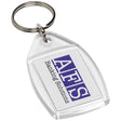 Llavero transparente con anilla abierta de metal. La anilla de metal es de perfil plano, ideal para envíos por correo postal. Dimensiones del encarte impreso: 3,5 x 2,4 cm. 5,9 x 3,5 cm