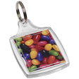 Llavero transparente S5 con anilla abierta de metal. Dimensiones del encarte impreso: 4 cm x 3,2 cm. 6,8 x 4,3 cm