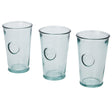 Juego de tres piezas de vidrio reciclado de 300 ml. Fabricados a partir de una botella de vidrio. El vidrio reciclado utiliza menos energía, materia prima y aditivos para su fabricación de lo que es habitual en la fabricación de vidrio tradicional. Tamaño del vaso: 13 cm de altura y 8 cm de diámetro. 29,5 x 13 x 8,5 cm