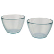 Set de cuencos de vidrio 100 % reciclado de 2 piezas con una capacidad de 700 ml, ideal para servir ensaladas. Los cuencos están hechos de botellas de vidrio reciclado. El vidrio reciclado utiliza menos energía, materia prima y aditivos para su fabricación de lo que es habitual en la fabricación de vidrio tradicional. Apta para lavavajillas. 17 x 15 x 17 cm
